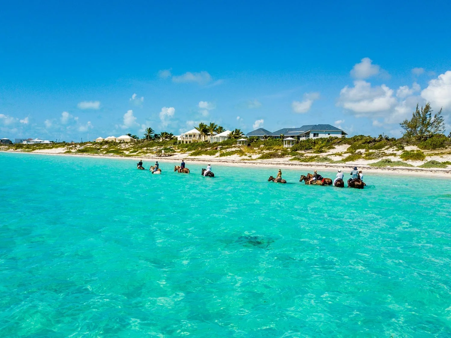 Ride along the pristine shores of Long Bay Beach with Provo Ponies, offering a unique equestrian experience.